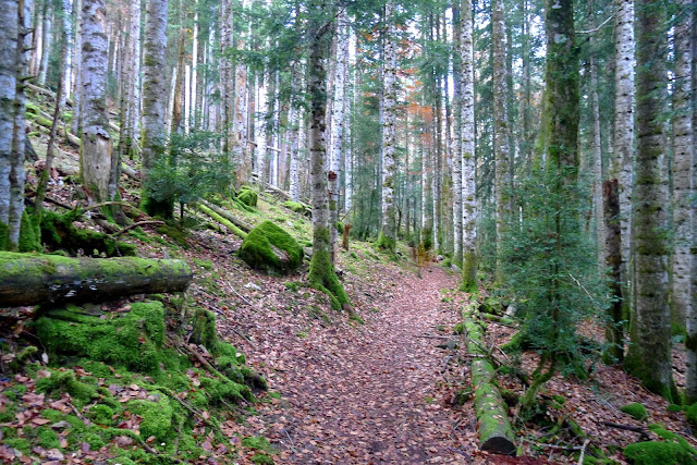 Tras un ligero ascenso por el bosque de hayas y abetos principalmente, grandes árboles que apenas dejan pasar la luz sobre un suelo alfombrado de musgo y hojas caídas. Llama la atención los estragos causados en el bosque por las avalanchas, con gran cantidad de troncos en las laderas entre montones de piedras, algunos árboles caídos en lenta descomposición, ofrecen un espectáculo caótico de la naturaleza salvaje.